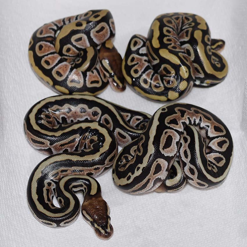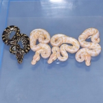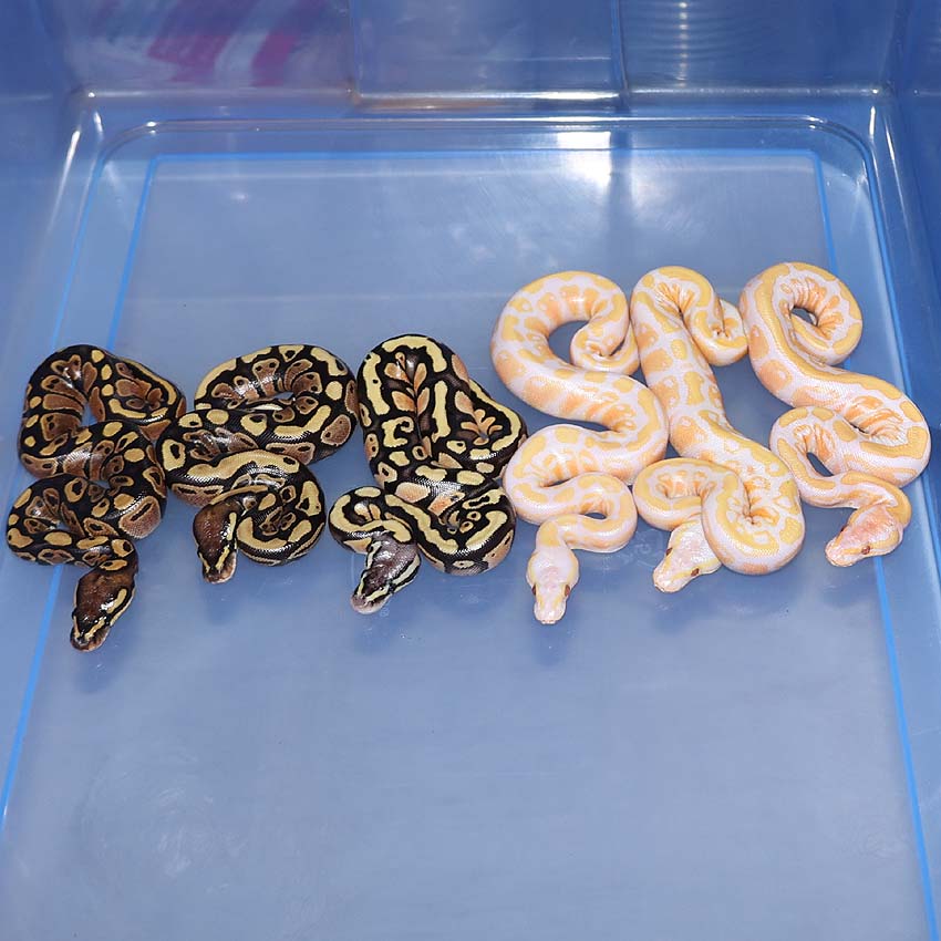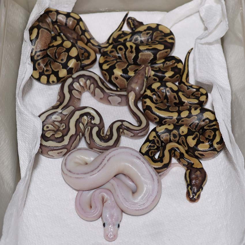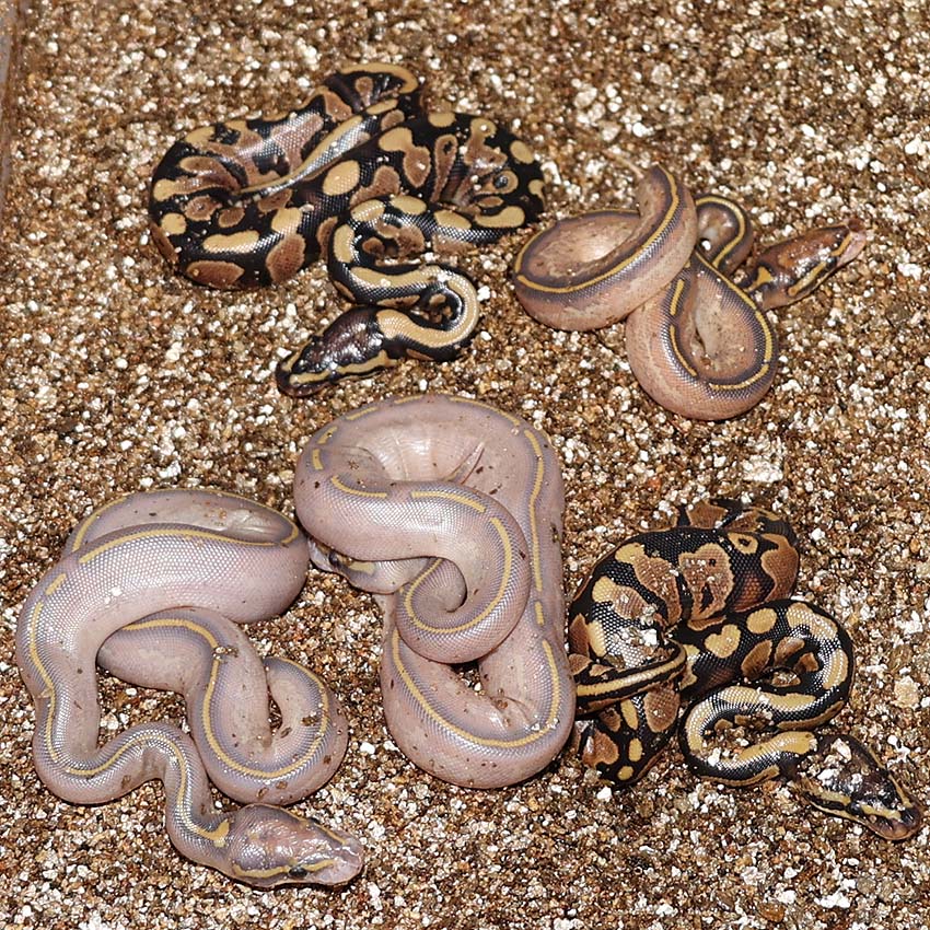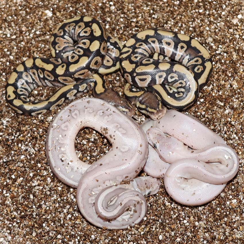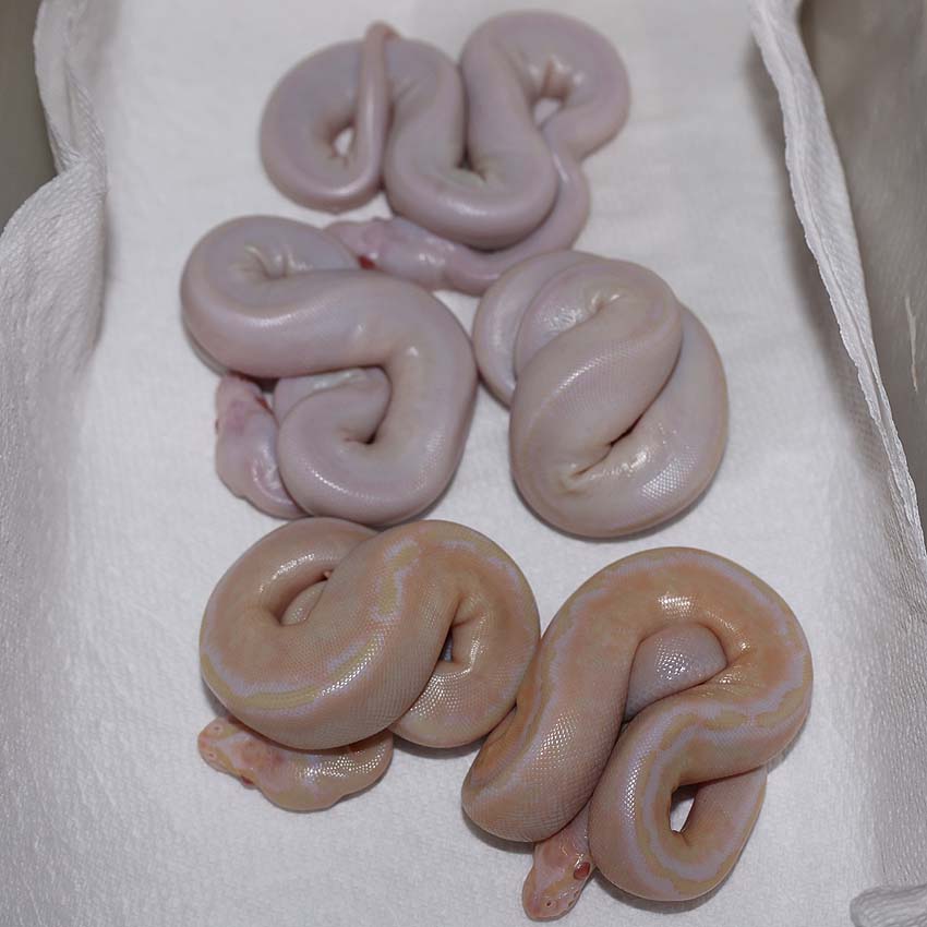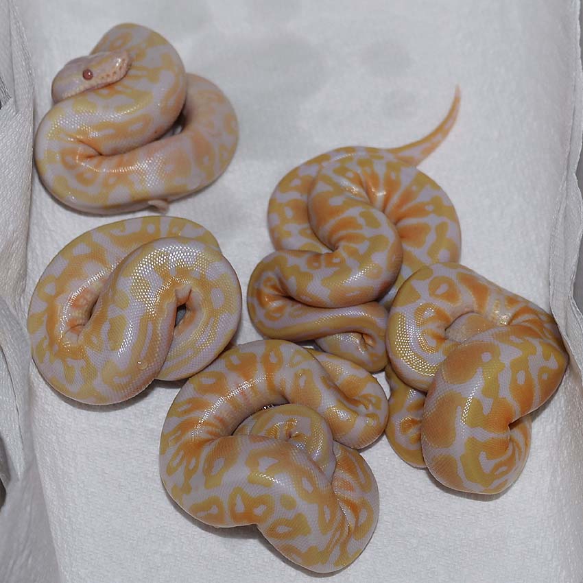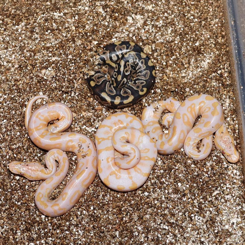 2021 Clutch 5 produced 2 random Axanthics. One of them was kinked in the egg and the other one was perfect. Unfortunately, the living axanthic randomly died at around 6 months of age which was a huge disappointment!.