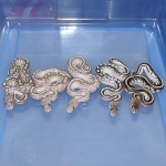 The 2021 Axanthics were produced from breeding Son back to mom. Mom is a CH Granite that I imported from the USA (Originally Captive Hatched in Africa) back in 2006. She was a Granite and so far has only produced Granites for me (Dominant gene). In 2021 I sold dad before the clutch hatched so after dad was sold and the living male Axanthic died I was left with mom and some of moms Granite Daughters.