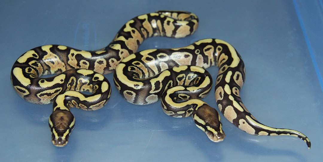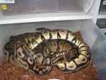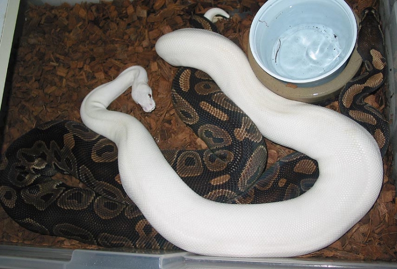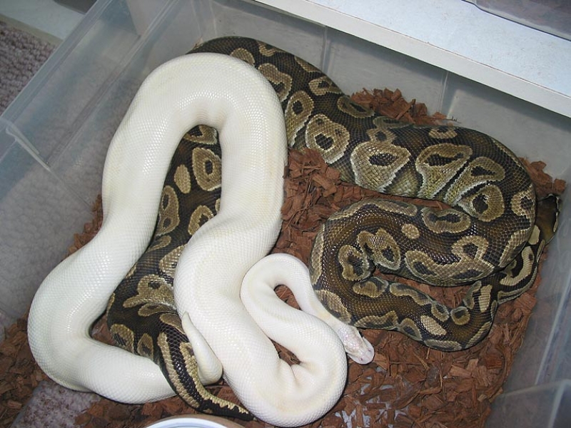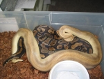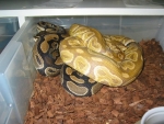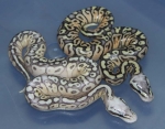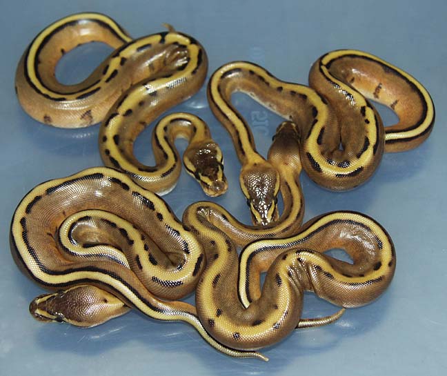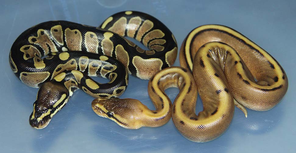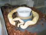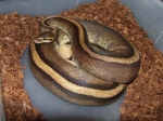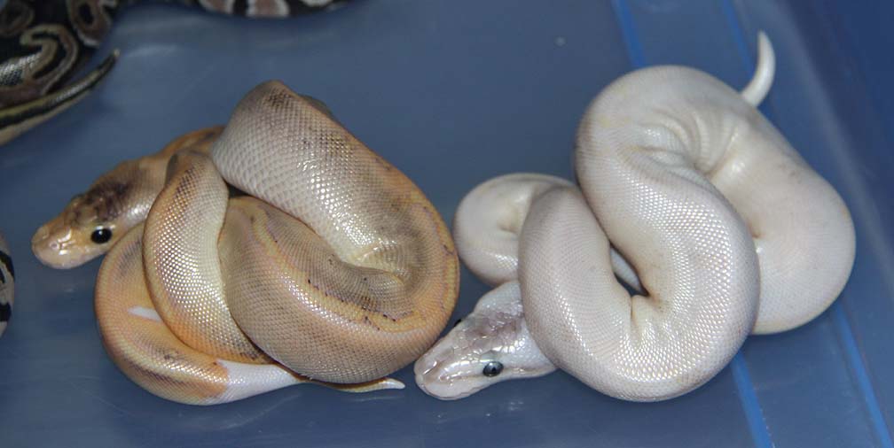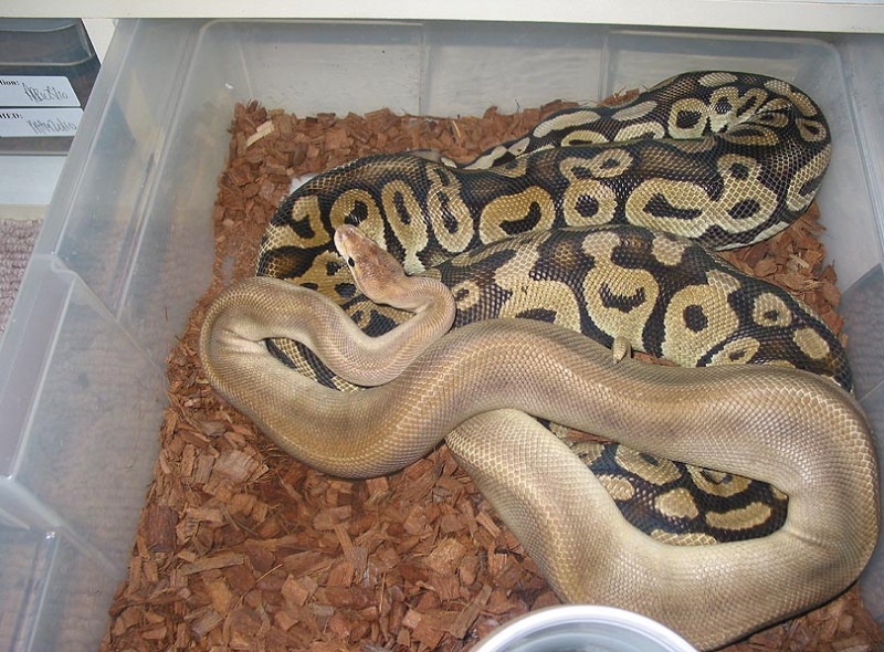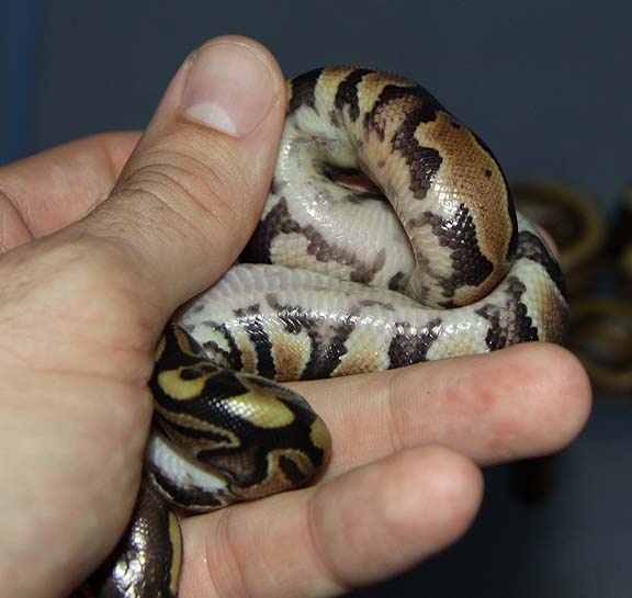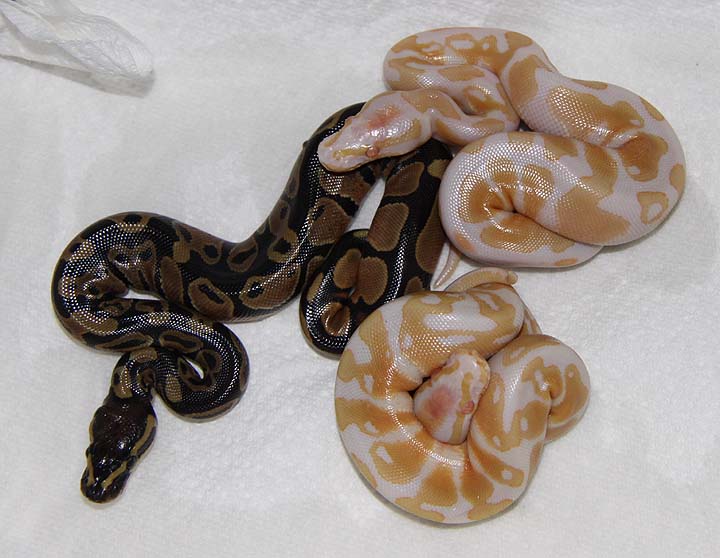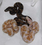 The female is offspring from me trying to prove out my Het Caramel pair from NERD that turned out to not be Het Caramel but het Albino. So, her parents were a Pastel Het Caramel x Het Albino (suppost to be a Het Caramel) breeding. I was never compensated by NERD for the pair of het caramels I purchased for $10,000 US in 1997 that never produced Caramels..........