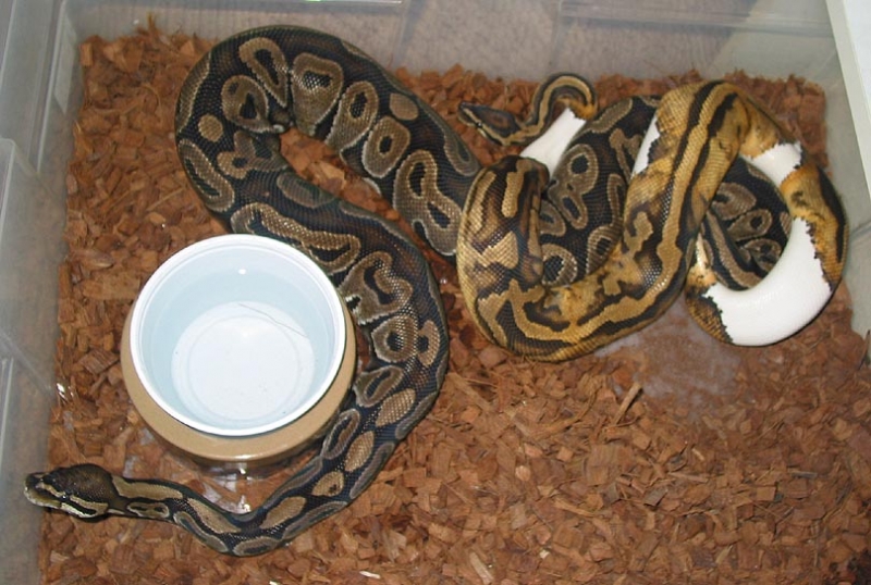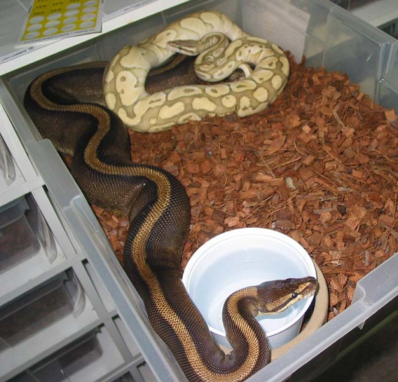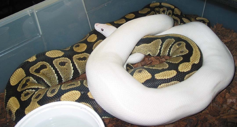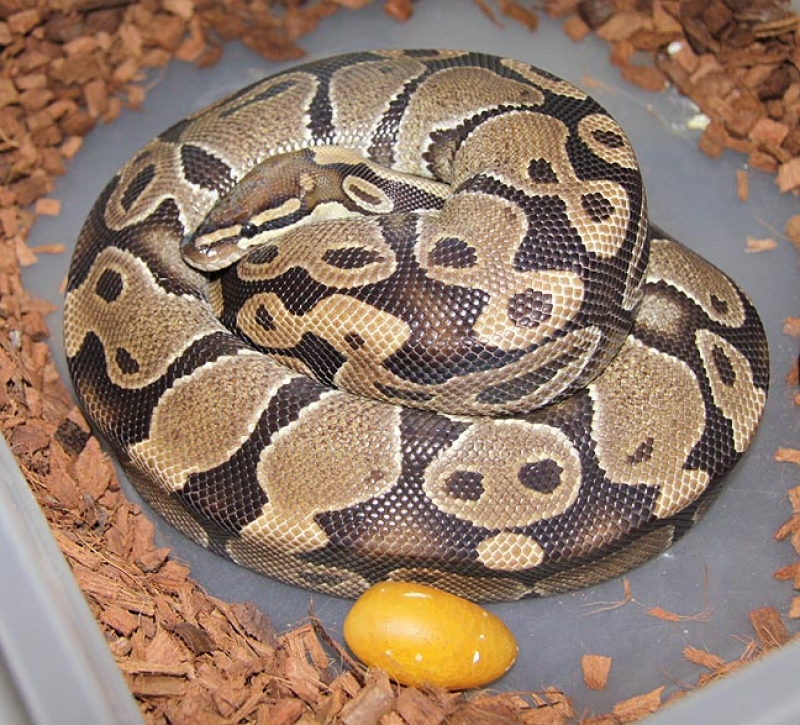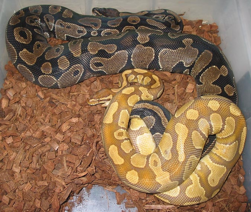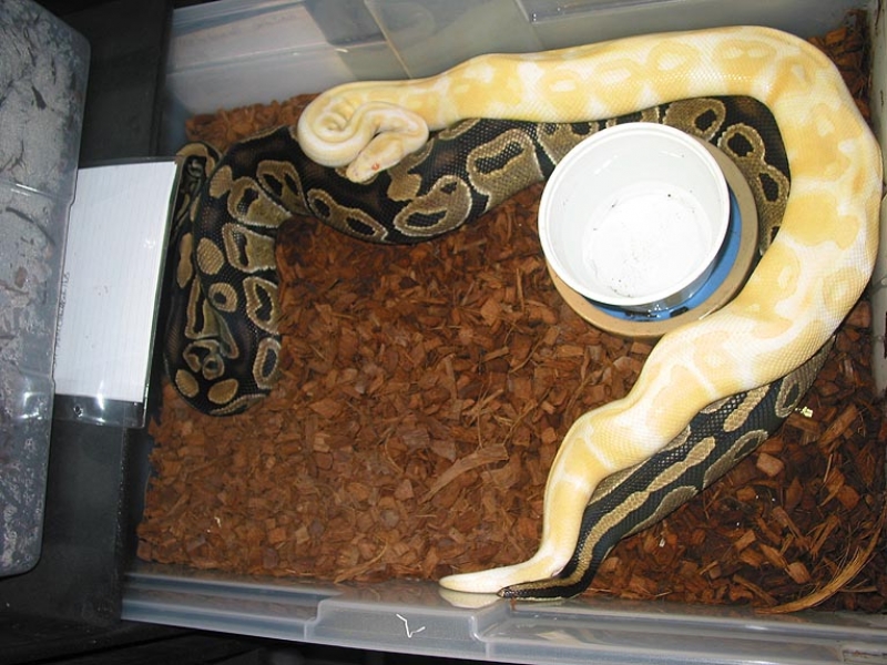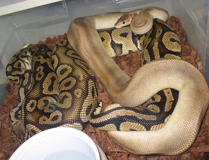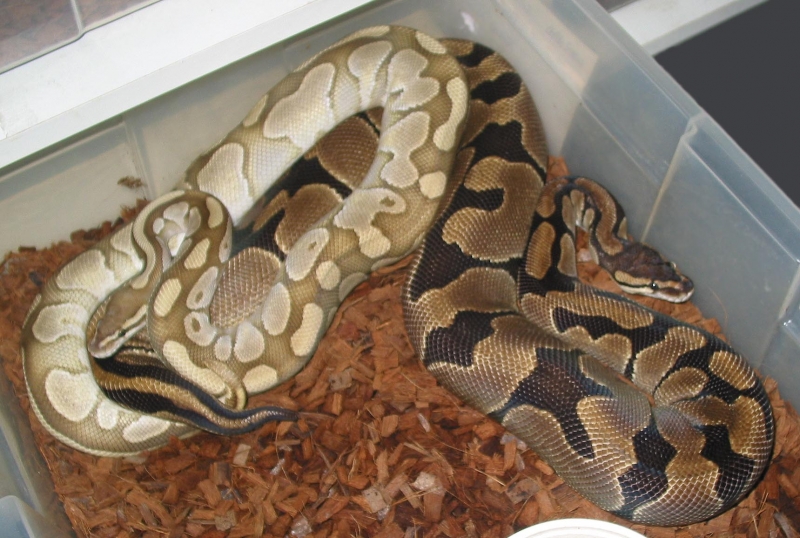 The female is offspring from me trying to prove out my Het Caramel pair from NERD that turned out to not be Het Caramel but het Albino. So, her parents were a Pastel Het Caramel x Het Albino (suppost to be a Het Caramel) breeding. I was never compensated by NERD for the pair of het caramels I purchased for $10,000 US in 1997 that never produced Caramels..........