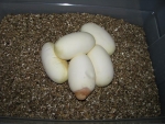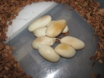 So, these are het genetic stripes bred back together to see if the mothers trait has a super form. Not much to go on though (3 eggs). My saving grace is that 2 more females from this lineage are gravid to the same pairings. So, I should have a good sample of eggs to go on.