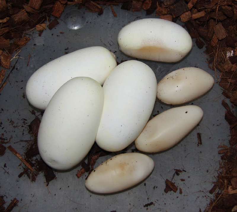 Well, this clutch proves that the Mutation X female can produce eggs. 7 eggs from a 2 year old female. Not bad......