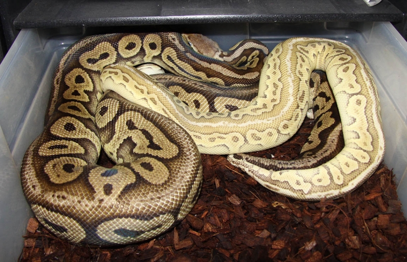 Also, this demonstrates why multiple males can be a pain in the ass. I generally only do multiple males if one of the males is a lazy breeder and I typically only do it with the same type. In this case both males were Het RA Het Pieds so in theory it shouldn't have mattered who fathered the clutch.......