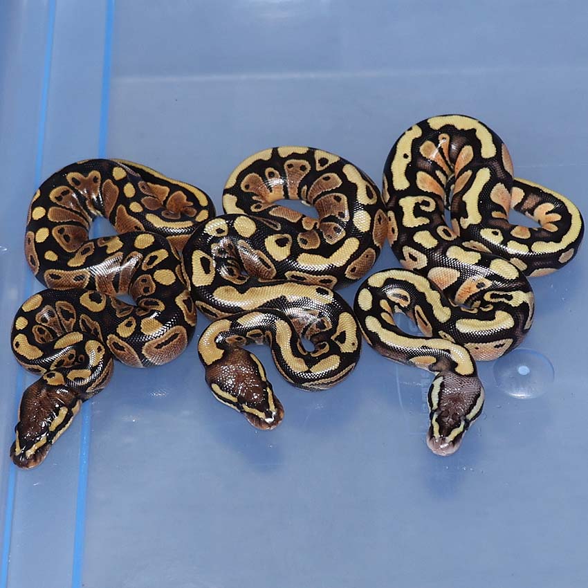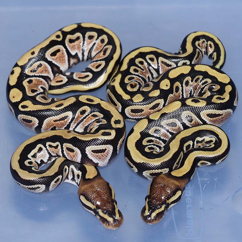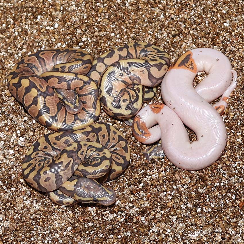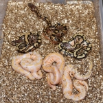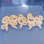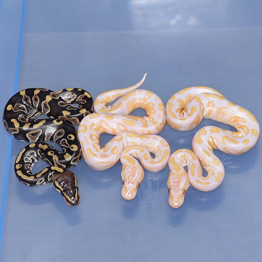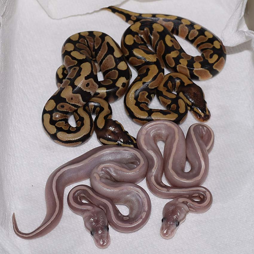 2021 Clutch 5 produced 2 random Axanthics. One of them was kinked in the egg and the other one was perfect. Unfortunately, the living axanthic randomly died at around 6 months of age which was a huge disappointment!.