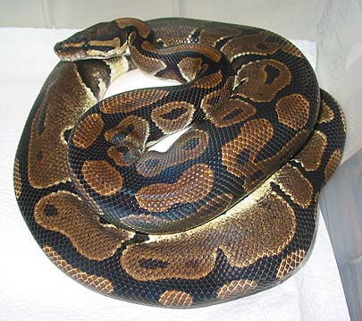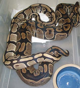 From breeding a High Yellow Male to a Normal Female (Sib Pastel 2 1999 "Changer"). This clutch should produce 1/2 High Yellows and 1/2 Normal. This gene was proven to be Dominant last year from 3 seperate clutches. I'm reserving the right to change the name from "High Yellow" at a later date. These guys need a better name then that. The Female is an IMG. She changed to black, white and grey and is now changing back to her normal colour over a period of 2 years.