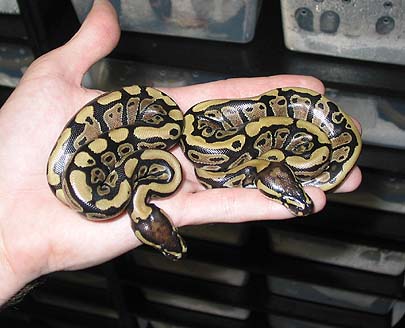 From breeding a High Yellow Male to a Normal Female (CH 3 2004). This clutch should produce 1/2 High Yellows and 1/2 Normal. This gene was proven to be Dominant last year from 3 seperate clutches. I'm reserving the right to change the name from "High Yellow" at a later date. These guys need a better name then that.